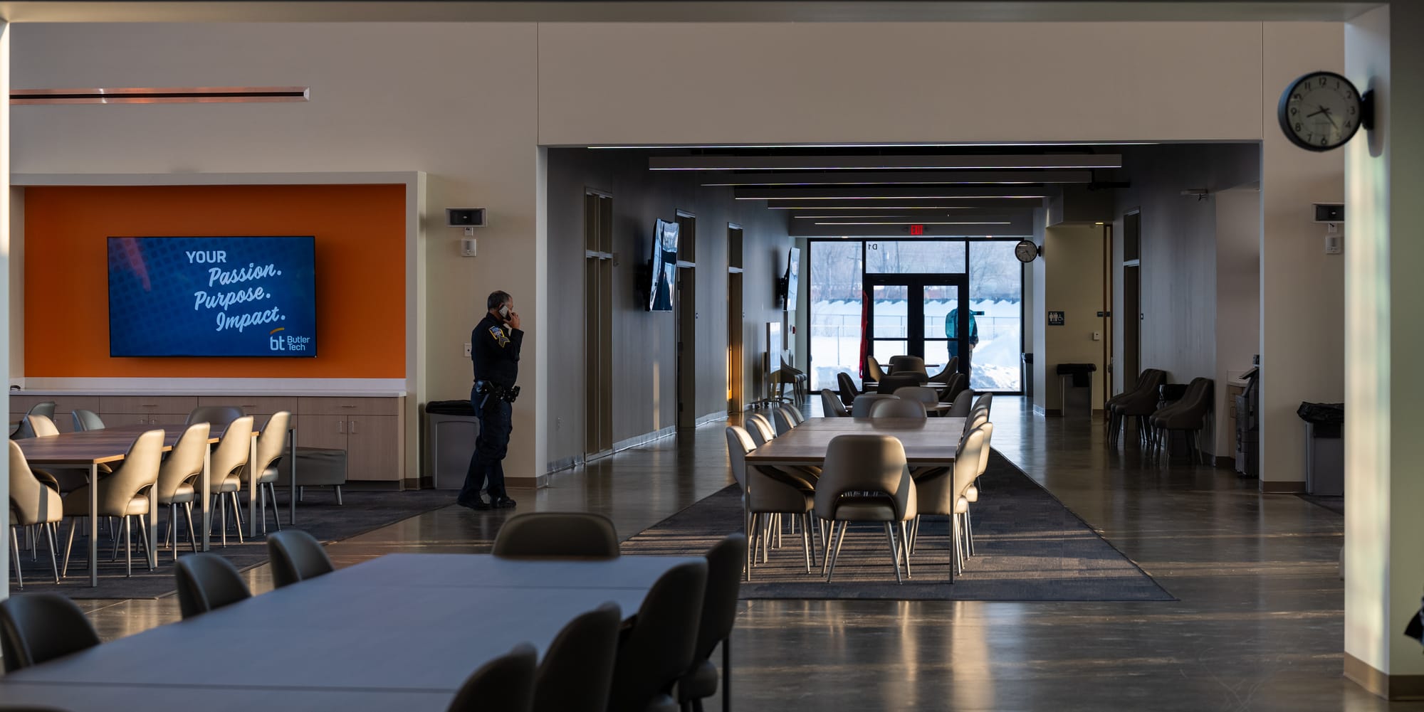 Snoddy said the new location of the aviation education hangar is a “big advantage” sitting next to a functional airport. Every room in the building has large, floor-to-ceiling windows where students can watch part of the runway/taxiway and watch planes take off as they think about what they want to do with their future.