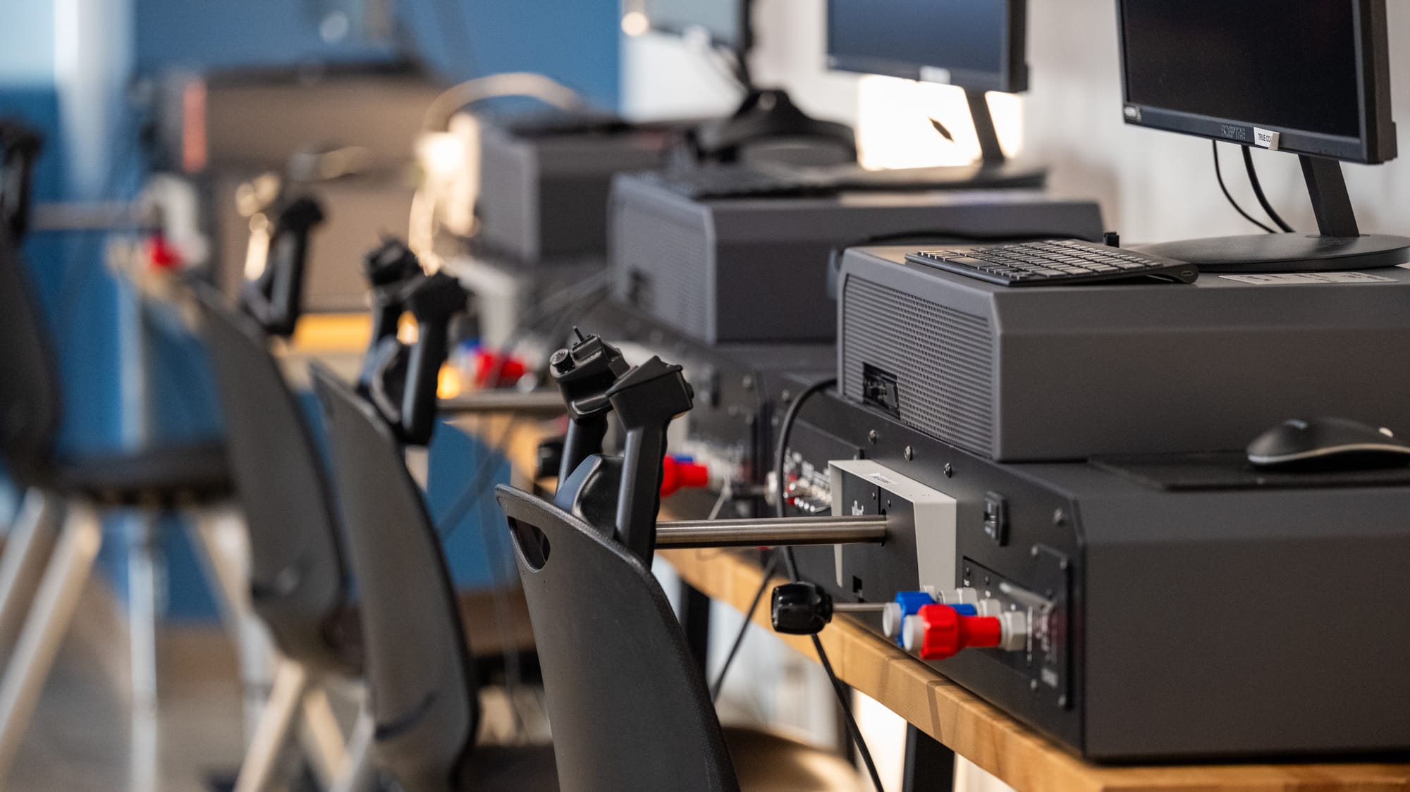 Inside the main building, students eat lunch and take the general education courses they would normally complete at the campus in Hamilton, but they also have access to a flight simulator lab, drones and other spaces where they can practice aviation maintenance and engineering skills – two pathways which are being added with the new facility.