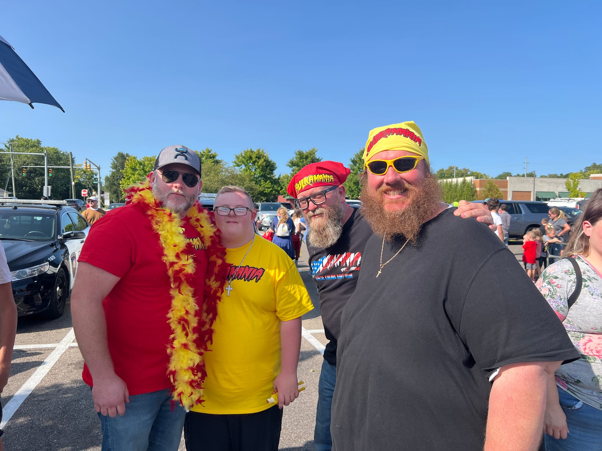 Joey Madden, BJ Simpson and Chris Foust, a trio of brothers in law from southeast Indiana, also waited in line, wearing Hulkomania shirts, bandanas and boas. Foust's love of Hogan has been lifelong.