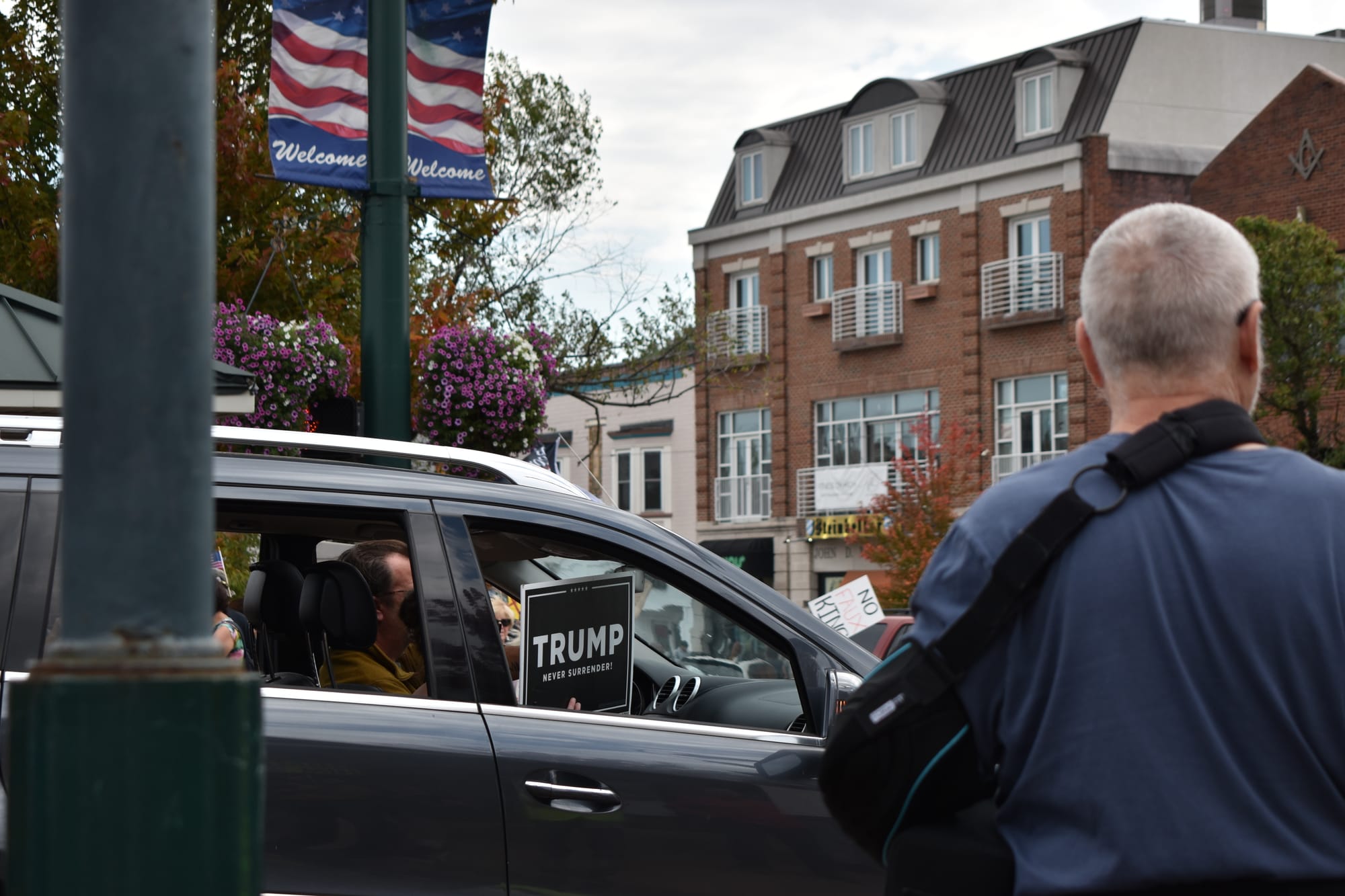 One protester, Miles Melvin, blew a whistle as a way to make noise when protesters would cheer after nearby drivers honked their horns.