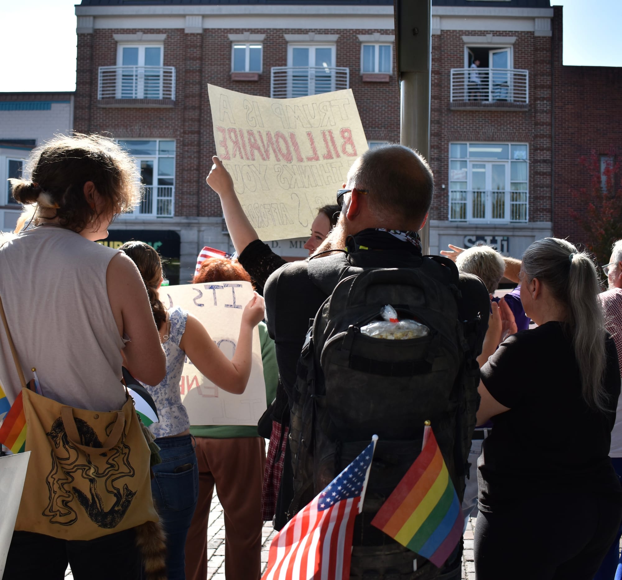 From strollers to walkers, people of all ages attended the honk-and-wave style protest, where members of the crowd sported not only signs showcasing frustration and concern toward the current state of the United States government, but also graphic T-shirts featuring references to the Constitution, equality, diversity and political figures such as United States Supreme Court Justice Ruth Bader Ginsburg.