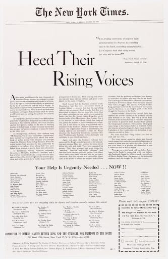 Why should we still care about a full page ad placed in the New York Times on March 29, 1960, by the Committee to Defend Martin Luther King and the Struggle for Freedom in the South?