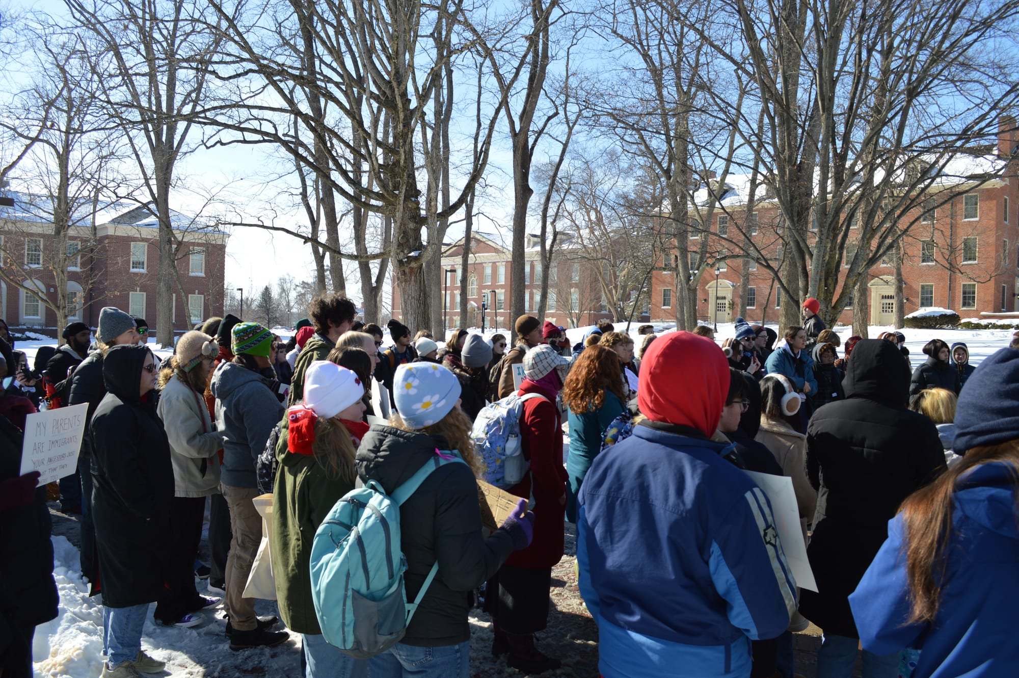 Miami University’s campus seal, also known as “The Hub,” was packed with students and faculty on Jan. 30 as part of a walk-out organized by the university’s Ohio Student Association (OSA), Young Democratic Socialists of America and the College Democrats at Miami (MUCD) chapters.