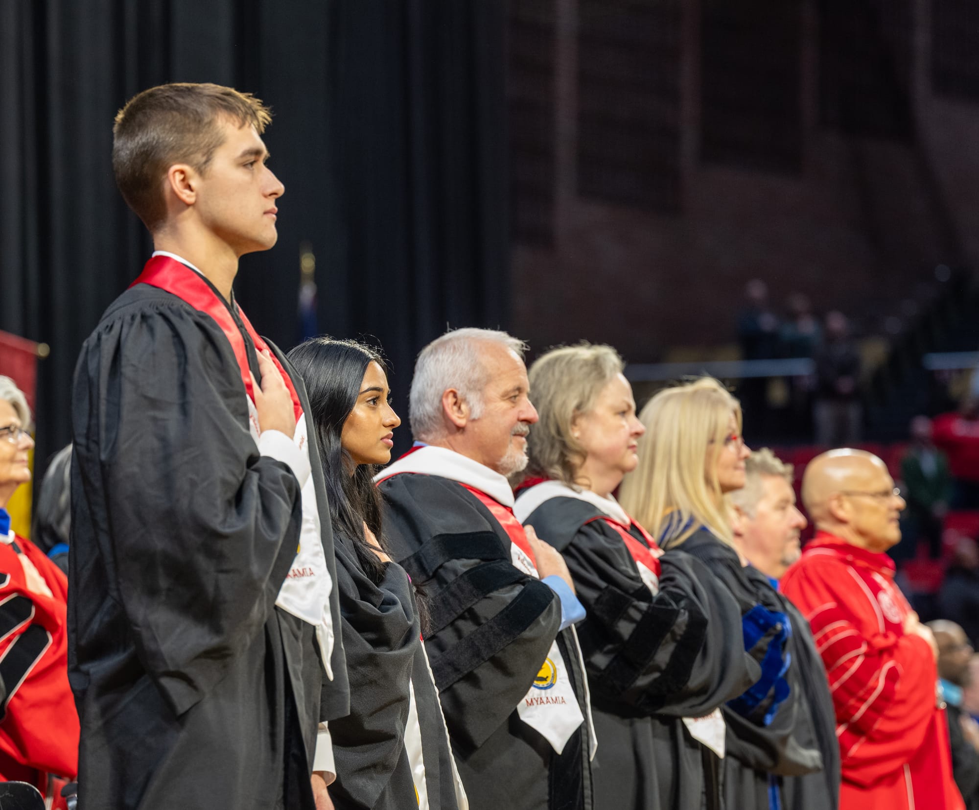Speakers for this year’s ceremony included President Gregory Crawford, who was accompanied by the Fall 2025 Commencement Speaker Allen McConnell, who is the recipient of the 2025 Benjamin Harrison Medallion and University Distinguished Professor of Psychology.