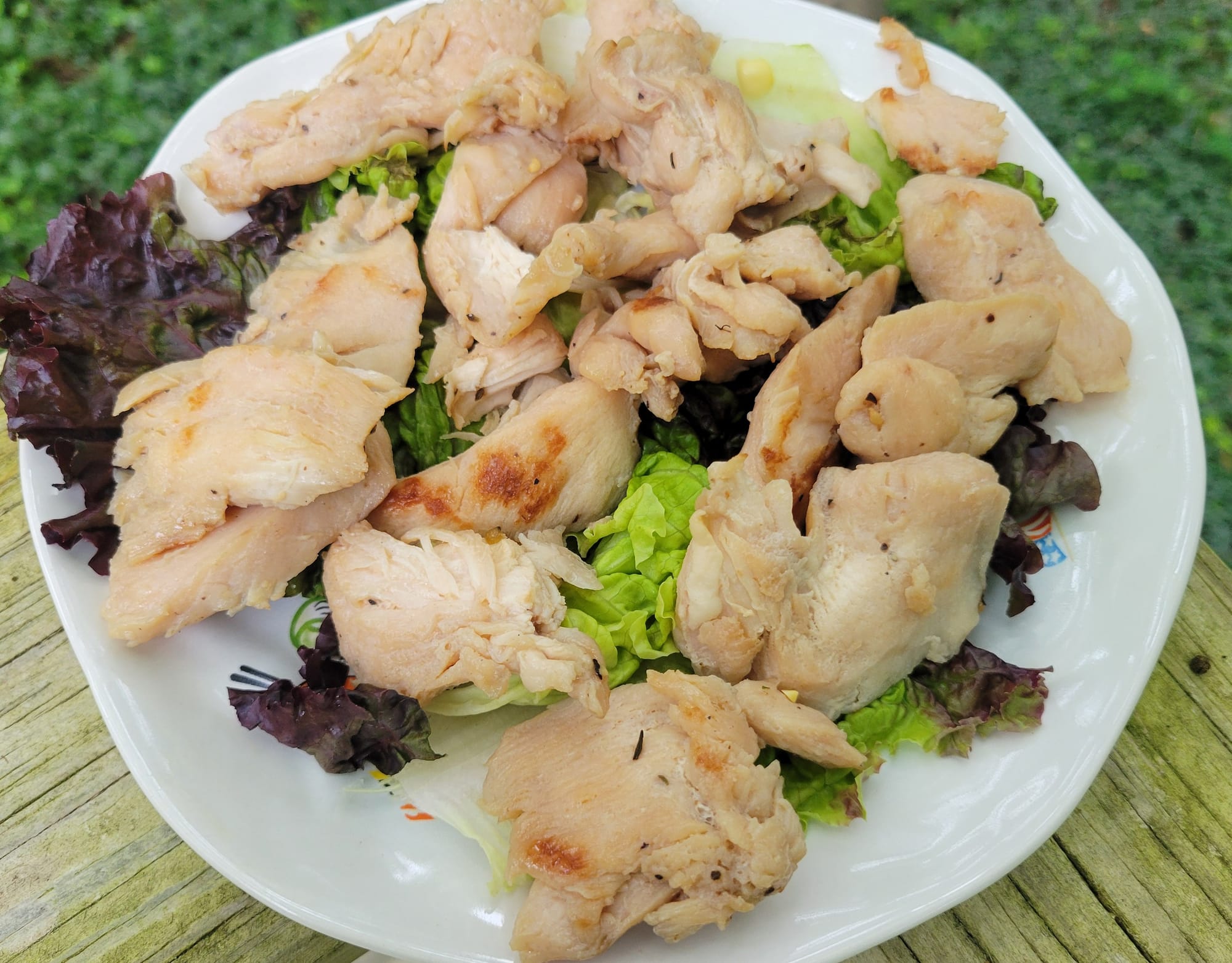 The newspaper recipe suggested using the chicken pieces in a stir-fry with an elaborate sauce. I followed the recipe and it turned out fine. But the result was too high-calorie for our household. So I repeated the four-step velveting process listed above, but this time I threw the chicken on a sheet of aluminum foil and threw it on the grill.