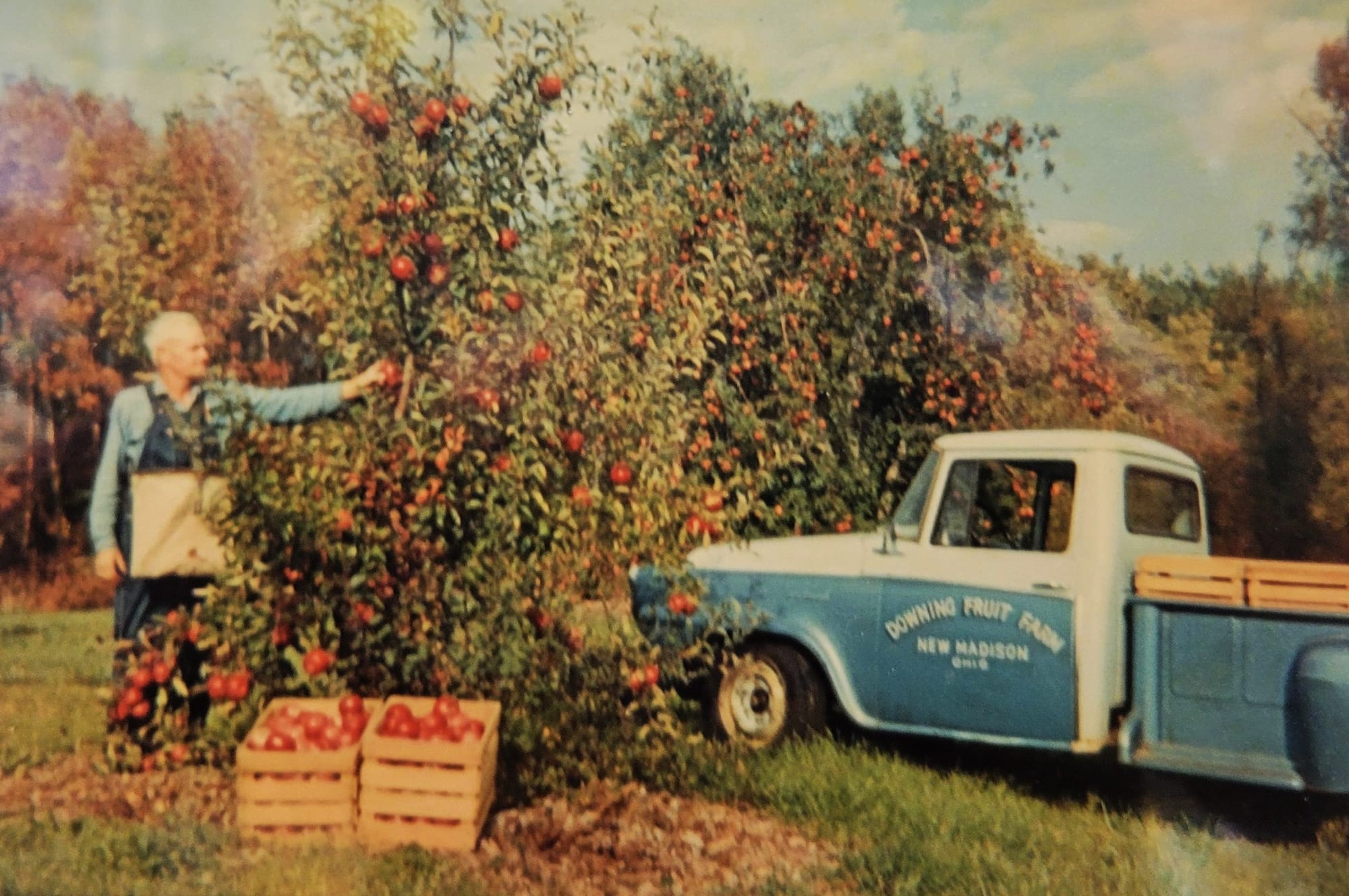 Scott is the seventh generation of the Downing family to grow apples on the farm, which was started in 1838 when John Downing brought apple tree saplings and seeds west to Ohio. MOON Co-op has a display of photos of several Downing generations.