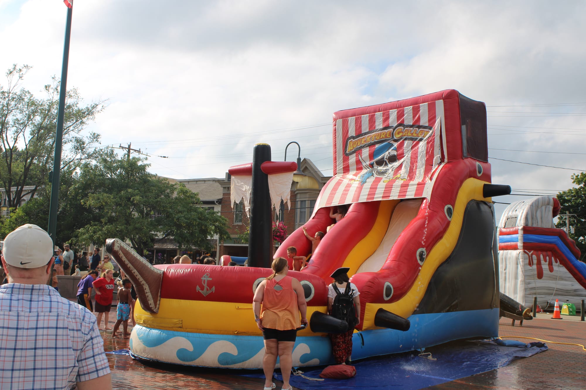 The event included live music from Parrots of the Caribbean, a local Jimmy Buffett tribute band, water slides and slip n' slides, pirate stilwalkers and characters, balloon artists and more. Also at the event were themed food vendors, local treats and DORA-friendly drinks.
