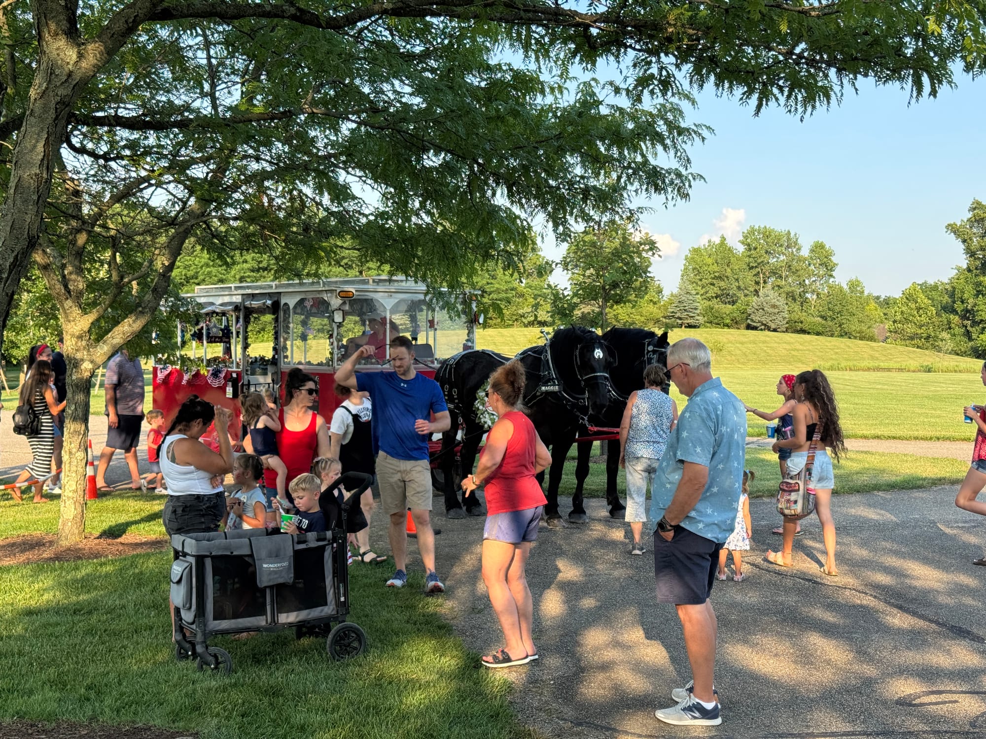 The celebration began at 5 p.m. with an array of recreation activities, including a horse carriage ride, face painting and bouncy castles. Attendees played cornhole, visited the food and drink trucks and set up their chairs for the fireworks later in the evening.