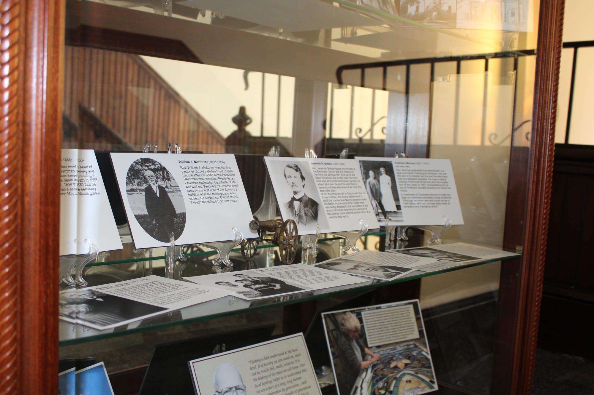 Many of the most notable figures in Miami history have ties to the church. William Holmes McGuffey, a prominent professor and librarian, joined the Presbyterian church in 1826 and took turns preaching with other professors.The first seven Miami presidents were all Presbyterian ministers. John W. Scott, father of First Lady Caroline Scott Harrison, helped construct the First Church in the 1830s, and the Oxford Theological Seminary, which opened its doors in 1838, is still an important community gathering place today.
