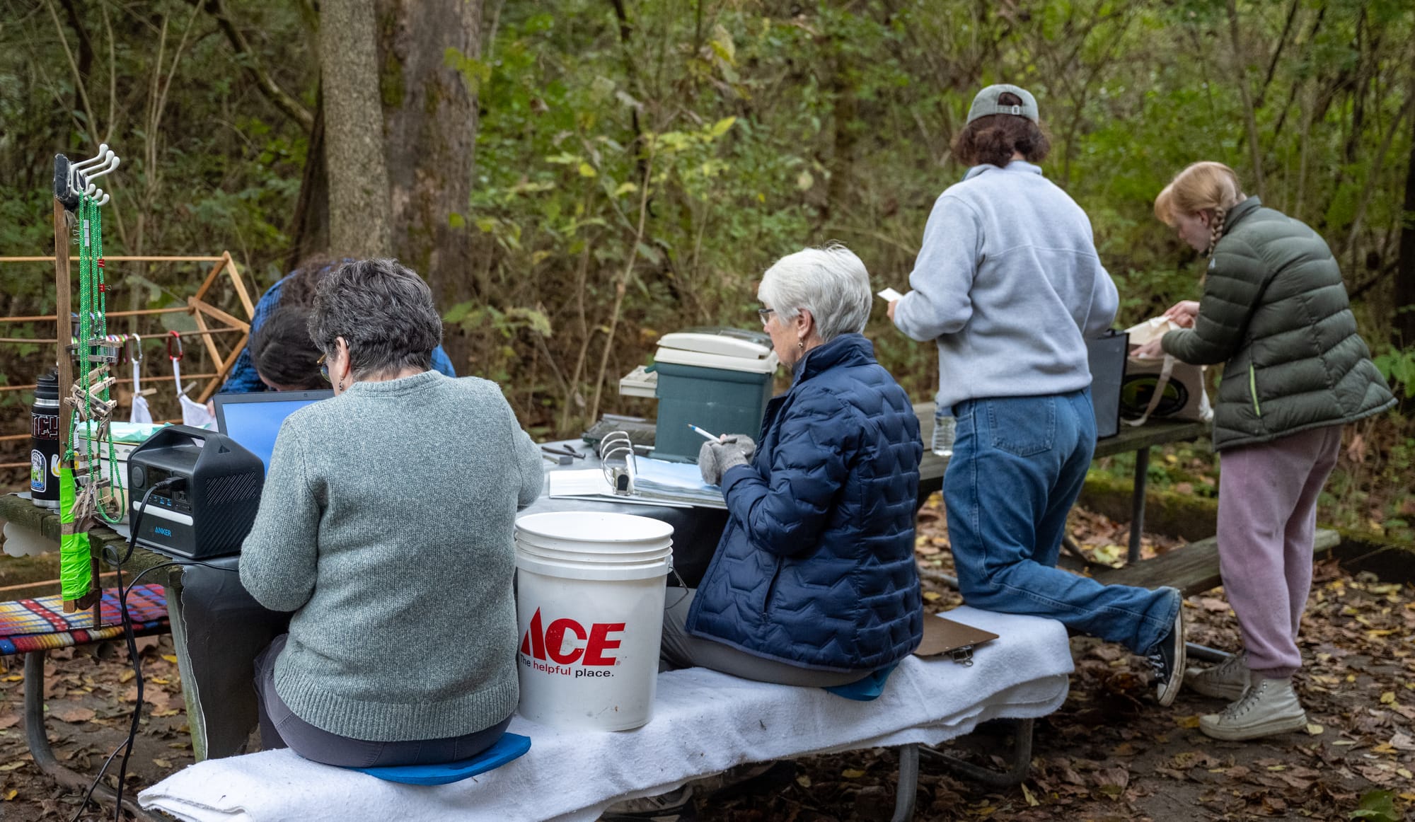 After a bird is captured in a net, it is brought back to the birding station to undergo tests to gain valuable information.