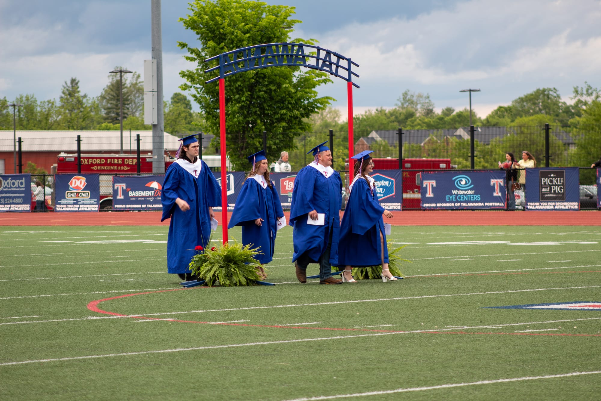 The ceremony began with the graduates walking across the field, through a red and blue arch with “Talawanda” along the top, to their seats, while the band played the classic “Pomp and Circumstance.” Krupa Patel, National Honor Society vice president, led the Pledge of Allegiance, and THS’s Chamber Singers performed the national anthem.