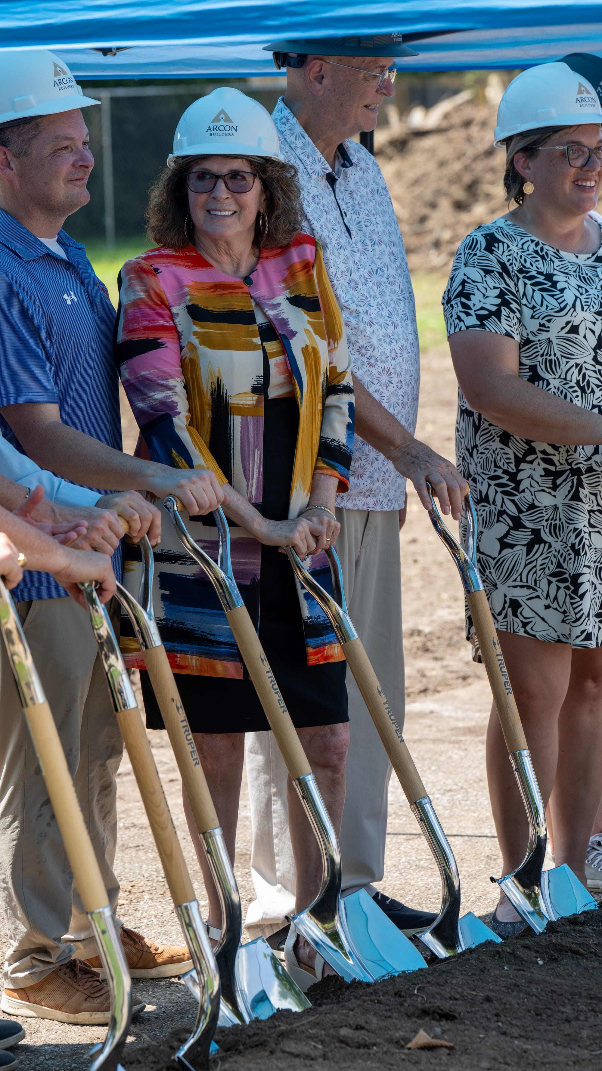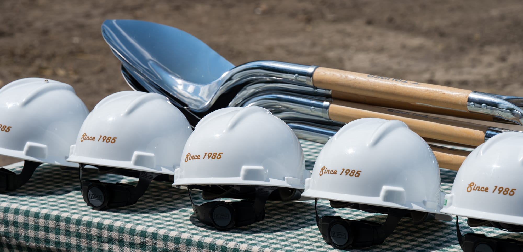 The TOPSS Groundbreaking Ceremony features shiny shovels and custom helmets to celebrate the event. Photo by Aidan Cornue.